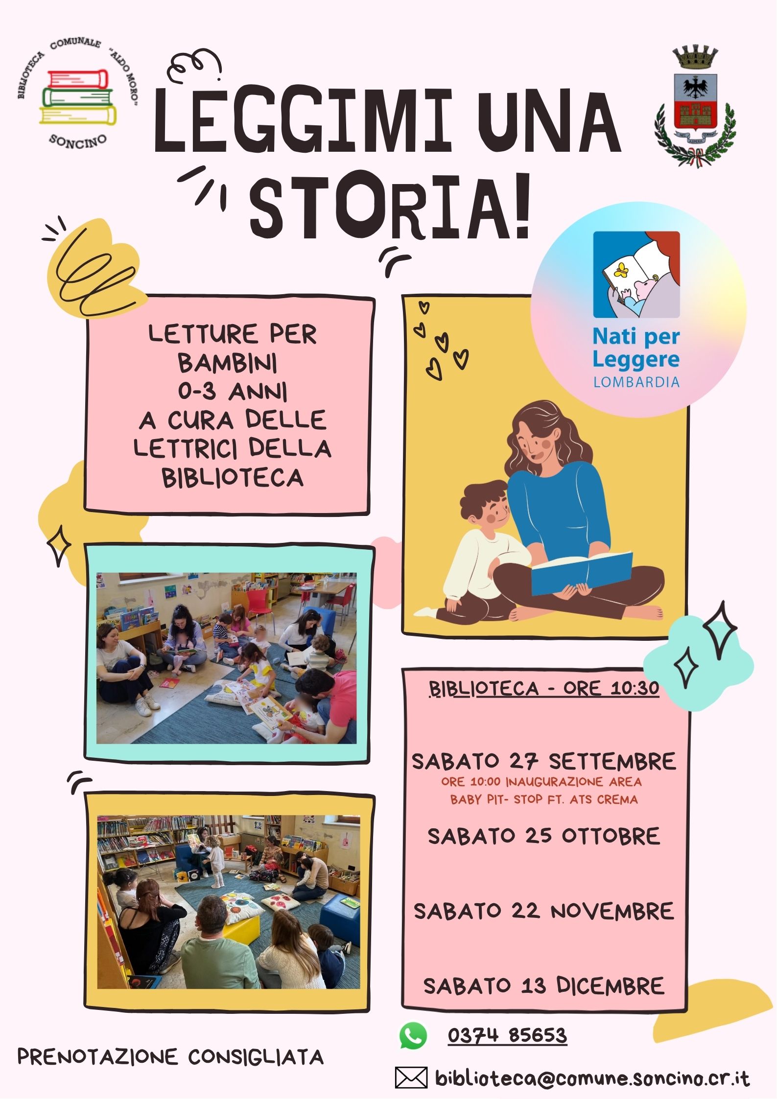 Prenotazione consigliata 037485653 biblioteca@comune.soncino.cr.it