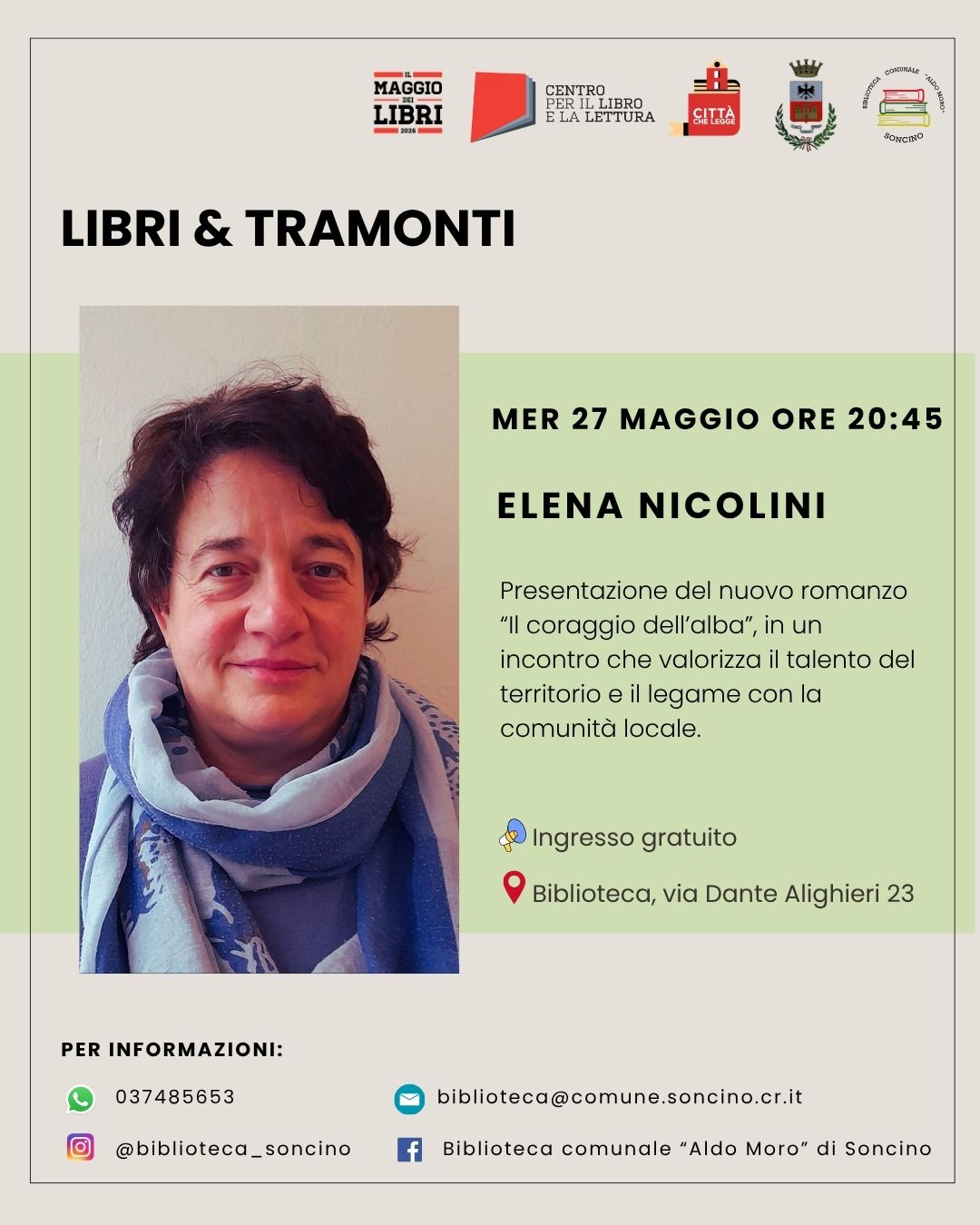 Presentazione del nuovo romanzo di Elena Nicolini "Il Coraggio dell'alba", in un incontro che valorizza il talento del territorio e il legame con la comunità locale.