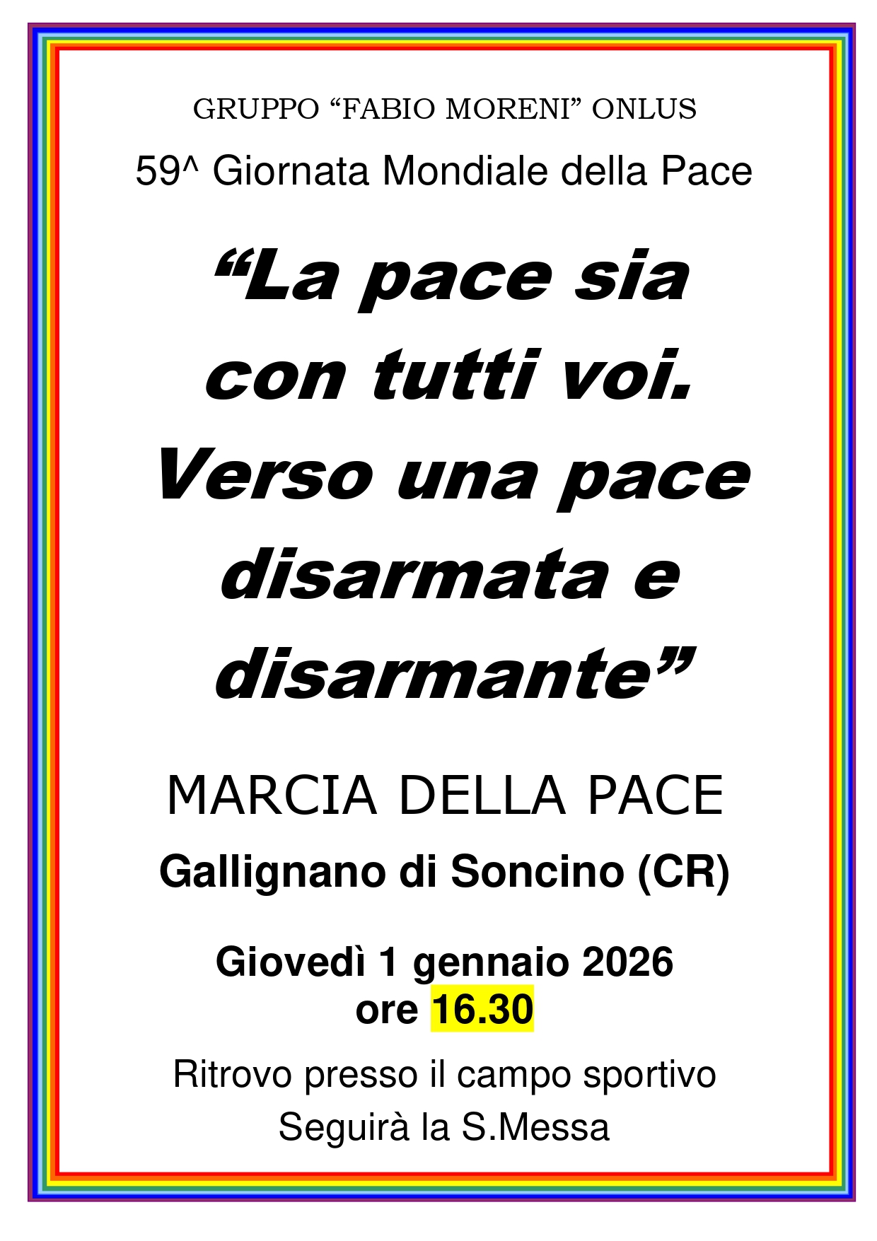In occasione della 56° Giornata Mondiale della Pace, il Gruppo Fabio Moreni Onlus organizza la marcia della Pace.